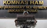 REPUBLIKA.CO.ID, JAKARTA. -- Sejumlah massa aksi menggelar unjuk rasa seusai melakukan audiensi di Kantor Komnas HAM, Jakarta, Senin (17/9/2023).