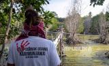 Ketua komunitas pegiat lingkungan Lingkar Juang Karimunjawa Bambang Zakariya menunjukkan pencemaran sisa limbah tambak udang vaname intensif di sekitar area hutan mangrove tepi pantai Desa Kemujan, Karimunjawa, Jepara, Jawa Tengah, Senin (18/9/2023). Menurut data yang dihimpun komunitas pegiat lingkungan Lingkar Juang Karimunjawa sebanyak 33 titik tambak udang intensif tak berizin di wilayah Karimunjawa telah merusak ekosistem lingkungan hidup, mengganggu sektor ekonomi masyarakat nelayan, petani rumput laut serta pariwisata akibat pencemaran sisa limbah dan deforestasi. (FOTO : ANTARA FOTO/Aji Styawan)