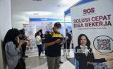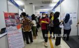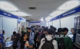 Pelamar mengunjungi stan perusahaan saat acara Jakarta Job Fair di Pusat Grosir Cililitan (PGC), Jakarta, rabu (19/9/2023). Jakarta Job Fair tersebut diselenggarakan oleh Suku Dinas Tenaga Kerja, Transmigrasi dan Energi Pemerintah Kota Jakarta Timur dengan menyediakan sebanyak 3.000 lowongan pekerjaan dari 40 perusahaan yang digelar selama dua hari mulai dari Selasa (18/9) hingga Rabu (19/9). Sejumlah pelamar antusias mengunjungi Jakarta Job Fair hingga rela mengantre sebelum jam operasional dibuka. Berdasarkan data Badan Pusat Statistik (BPS) angka pengangguran di Jakarta pada Februari 2023 tercatat sebanyak 397.623 orang atau mengalami kenaikan sebesar 8,2 persen dibandingkan Agustus 2022 sebanyak 377.294 orang. (FOTO : Republika/Thoudy Badai)