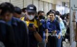 Pelamar mengantre sebelum memasuki area Jakarta Job Fair di Pusat Grosir Cililitan (PGC), Jakarta, rabu (19/9/2023). Jakarta Job Fair tersebut diselenggarakan oleh Suku Dinas Tenaga Kerja, Transmigrasi dan Energi Pemerintah Kota Jakarta Timur dengan menyediakan sebanyak 3.000 lowongan pekerjaan dari 40 perusahaan yang digelar selama dua hari mulai dari Selasa (18/9) hingga Rabu (19/9). Sejumlah pelamar antusias mengunjungi Jakarta Job Fair hingga rela mengantre sebelum jam operasional dibuka. Berdasarkan data Badan Pusat Statistik (BPS) angka pengangguran di Jakarta pada Februari 2023 tercatat sebanyak 397.623 orang atau mengalami kenaikan sebesar 8,2 persen dibandingkan Agustus 2022 sebanyak 377.294 orang. (FOTO : Republika/Thoudy Badai)