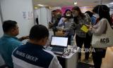 Pelamar memindai barcode pendaftaran sebelum memasuki area Jakarta Job Fair di Pusat Grosir Cililitan (PGC), Jakarta, rabu (19/9/2023). Jakarta Job Fair tersebut diselenggarakan oleh Suku Dinas Tenaga Kerja, Transmigrasi dan Energi Pemerintah Kota Jakarta Timur dengan menyediakan sebanyak 3.000 lowongan pekerjaan dari 40 perusahaan yang digelar selama dua hari mulai dari Selasa (18/9) hingga Rabu (19/9). Sejumlah pelamar antusias mengunjungi Jakarta Job Fair hingga rela mengantre sebelum jam operasional dibuka. Berdasarkan data Badan Pusat Statistik (BPS) angka pengangguran di Jakarta pada Februari 2023 tercatat sebanyak 397.623 orang atau mengalami kenaikan sebesar 8,2 persen dibandingkan Agustus 2022 sebanyak 377.294 orang. (FOTO : Republika/Thoudy Badai)