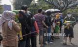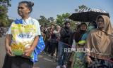 Warga antre untuk membeli beras kualitas medium dan minyak goreng saat operasi pasar beras medium di area Monumen Perjuangan Rakyat Jawa Barat (Monpera), Kota Bandung, Jawa Barat, Selasa (19/9/2023). Pemerintah Kota Bandung bersama Disdagin Kota Bandung dan Bulog Cabang Bandung menggelar operasi pasar yang menyediakan beras medium sebanyak 10 ton per kecamatan dengan harga Rp10.200 per kilogram atau Rp51.500 per lima kilogram. Operasi pasar tersebut diharapkan dapat menekan kenaikan harga beras di Kota Bandung. (FOTO : ABDAN SYAKURA/REPUBLIKA)
