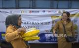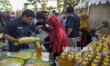 Warga membeli beras kualitas medium dan minyak goreng saat operasi pasar beras medium di area Monumen Perjuangan Rakyat Jawa Barat (Monpera), Kota Bandung, Jawa Barat, Selasa (19/9/2023). Pemerintah Kota Bandung bersama Disdagin Kota Bandung dan Bulog Cabang Bandung menggelar operasi pasar yang menyediakan beras medium sebanyak 10 ton per kecamatan dengan harga Rp10.200 per kilogram atau Rp51.500 per lima kilogram. Operasi pasar tersebut diharapkan dapat menekan kenaikan harga beras di Kota Bandung. (FOTO : ABDAN SYAKURA/REPUBLIKA)