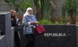 Mantan Direktur Utama PT Pertamina (Persero) periode 2009-2014, Karen Agustiawan memenuhi panggilan penyidik KPK untuk menjalani pemeriksaan di Gedung Merah Putih KPK, Jakarta, Selasa (19/9/2023). Karen Agustiawan diperiksa KPK untuk dimintai keterangan dalam perkara dugaan korupsi pengadaan Liquefied Natural Gas (LNG) di Pertamina tahun 2011-2021. (FOTO : Republika/Thoudy Badai)