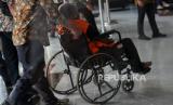 REPUBLIKA.CO.ID,JAKARTA -- Tersangka mantan gubernur Papua Lukas Enembe mengenakan kursi roda menjalani pemeriksaan di Gedung Merah Putih KPK, Jakarta, Selasa (19/9/2023).