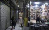 Suasana Pasar Andir Trade Center yang sepi di Andir, Kota Bandung, Jawa Barat, Rabu (20/9/2023). Pedagang di pasar tersebut menyatakan, dalam beberapa bulan terakhir omzet penjualan pakaian menurun hingga 90 persen atau Rp1 juta per hari dari yang sebelumnya mencapai Rp20 juta hingga Rp35 juta per hari. Penurunan omzet tersebut akibat menurunnya jumlah pengunjung, serta maraknya aktivitas jual beli secara daring. (FOTO : ABDAN SYAKURA/REPUBLIKA)