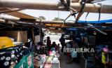 Sejumlah warga Kampung Bayam beraktivitas di tenda hunian darurat di depan pintu masuk Jakarta International Stadium (JIS), Jakarta, Rabu (20/9/2023). Sebanyak 11 Kepala Keluarga (KK) yang sudah bertahan selama 10 bulan di tenda hunian darurat akibat belum bisa menempati Kampung Susun Bayam tersebut rencananya akan direlokasi ke Rusun Nagrak oleh Pemerintah Provinsi DKI Jakarta untuk pembangunan trotoar jelang perhelatan Piala Dunia U-17. (FOTO : Republika/Putra M. Akbar)