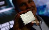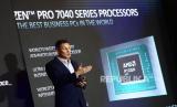 Director of Commercial Sales, AMD, Asia Pacific Region Alexey Navolokin, memperkenalkan salah satu prosesor terbaru AMD, Asia di Jakarta, Rabu (20/9/2023). AMD memamerkan jajaran prosesor untuk laptop premium dan mobile workstation Windows 11 kelas komersial bertenaga prosesor x86 paling canggih dan hemat daya untuk penggunaan bisnis. AMD memperkenalkan line up prosesor baru AMD Ryzen™ Pro 7000 Series Processor & AMD EPYC™ 9004 Series generasi keempat. (FOTO : REPUBLIKA/YOGI ARDHI)