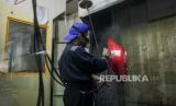 Pekerja mengecat bagian motor saat proses perakitan motor listrik di PT Terang Dunia Internusa Plant II, Citereup, Kabupaten Bogor, Jawa Barat, Kamis (21/9/2023). PT Terang Dunia Internusa atau United Bike mulai fokus memproduksi motor dan sepeda listrik dengan menargetkan kapasitas produksi sebanyak 500.000 unit per tahun sebagai upaya mendukung pengurangan emisi karbon. (FOTO : Republika/Putra M. Akbar)