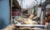 REPUBLIKA.CO.ID,JAKARTA -- Warga berada di depan bangunan yang dibongkar petugas Pemprov DKI Jakarta di Gang Royal, Penjaringan, Jakarta Utara, Kamis (21/9/2023).