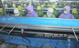 Seorang trainer sedang memberikan pelatihan pengolahan hasil laut kepada pekerja perusahaan eksportir makanan olahan hasil lautPT Bumi Menara Internusa (BMI) di Lamongan, Jawa Timur, Selasa (19/9/2023). Guna menjaga kualitas produksi sekaligus memberikan kesempatan karyawan mendapatkan mata pencaharian yang berkelanjutan, BMI berkomitmen untuk berinvestasi di sisi SDM dengan memberikan pelatihan secara rutin kepada belasan ribu karyawannya yang tersebar di tujuh lokasi di Indonesia. (FOTO : Dok Republika)