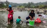 REPUBLIKA.CO.ID, GUNUNG SARI -- Sejumlah warga mencuci pakaian dan mandi menggunakan air dari aliran Kali Cileungsi di Desa Gunung Sari, Kabupaten Bogor, Jawa Barat, Kamis (21/9/2023).