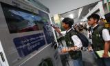 Pengunjung mencoba proses pengumpulan dan penukaran botol plastik paska konsumsi menggunakan inovasi Reverse Vending Machine (RVM) hasil kerja sama Danone-AQUA dengan Plastic Pay di booth Danone-AQUA pada Festival LIKE 2023 di Indonesia Arena, Jakarta, Senin (18/9/2023). Sejalan dengan komitmen Perusahaan untuk memberikan dampak positif bagi masyarakat dan lingkungan, Danone-AQUA secara konsisten menjadi mitra strategis pemerintah dengan salah satu fokus pada upaya pengelolaan sampah dan menekan emisi karbon. (FOTO : Dok Republika)