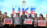 Direktur Jenderal Pengelolaan Sampah, Limbah dan B3 (Dirjen PSLB3) Kementerian Lingkungan Hidup dan Kehutanan (KLHK) Rosa Vivien Ratnawati (ketiga kiri) bersama VP General Secretary Danone Indonesia Vera Galuh Sugijanto (kelima kiri) melakukan penandatanganan Kemitraan Pengumpulan dan Daur Ulang Sampah Kemasan dalam Rangka Pemenuhan Bahan Baku Industri Daur Ulang Plastik pada Festival LIKE di Indonesia Arena, beberapa waktu lalu. Danone-AQUA menegaskan komitmennya untuk menghadirkan kesehatan melalui produk berkualitas, serta membawa dampak positif bagi masyarakat dan lingkungan, termasuk membantu pembangunan ekonomi. Salah satu wujud komitmen keberlanjutan Danone, diimplementasikan melalui gerakan #BijakBerplastik. (FOTO : Dok Republika)