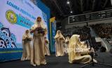 Peserta mengikuti lomba marawis saat acara Islamic Book Fair 2023 di Istora Senayan, Jakarta, Rabu (20/9/2023). Lomba marawis tersebut diikuti oleh beberapa pondok pesantren di kawasan Jabodetabek dalam rangka gelaran Islamic Book Fair ke-21. Selain itu, IBF 2023 juga meyajikan pameran buku islam dari 71 perusahaan penerbit buku dengan jumlah stan sebanyak 191 yang berlangsung mulai dari Rabu (20/9) hingga Ahad (24/9) mendatang. (FOTO : Republika/Thoudy Badai)