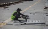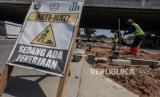 Pekerja menyelesaikan perbaikan trotoar di depan Jakarta International Stadium (JIS), Jakarta, Jumat (22/9/2023). Dinas Bina Marga DKI Jakarta menargetkan perbaikan trotoar, meninggikan jalan hingga pemasangan lampu di depan Jakarta International Stadium (JIS) akan selesai pada Oktober 2023 sebelum perhelatan Piala Dunia U-17. (FOTO : Republika/Putra M. Akbar)