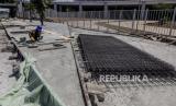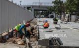 REPUBLIKA.CO.ID,JAKARTA -- Sejumlah pekerja menyelesaikan perbaikan trotoar di depan Jakarta International Stadium (JIS), Jakarta, Jumat (22/9/2023).