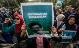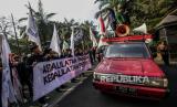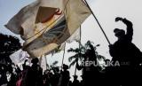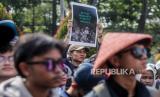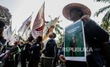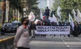 Sejumlah mahasiswa yang tergabung dalam Badan Eksekutif Mahasiswa Seluruh Indonesia (BEM SI) melaksanakan aksi di depan Kantor Kementerian Pertanian, Pasar Minggu, Jakarta, Jumat (22/9/2023). Aksi yang dilakukan dalam rangka jelang peringatan Hari Tani Nasional tersebut menyuarakan seputar permasalahan pertanian di Indonesia seperti konflik agraria dan kesejahteraan buruh tani yang mengakibatkan krisis sosial dan ekologis di masyarakat. (FOTO : Republika/Putra M. Akbar)