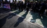 Sejumlah mahasiswa yang tergabung dalam Badan Eksekutif Mahasiswa Seluruh Indonesia (BEM SI) melakukan longmarch menuju Kantor Kementerian Pertanian di Pasar Minggu, Jakarta, Jumat (22/9/2023). Aksi yang dilakukan dalam rangka jelang peringatan Hari Tani Nasional tersebut menyuarakan seputar permasalahan pertanian di Indonesia seperti konflik agraria dan kesejahteraan buruh tani yang mengakibatkan krisis sosial dan ekologis di masyarakat. (FOTO : Republika/Putra M. Akbar)
