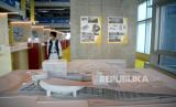 Pengunjung mengamati karya dalam pameran Jakarta Architecture Festival 2023 di Jakarta, Jumat (22/9/2023). Jakarta Architecture Festival 2023 yang berlangsung hingga 30 September 2023 tersebut mengambil tema TRANSIT(ION). Dalam pameran ini, pengunjung akan melihat berbagai ide desain arsitektur untuk beberapa bangunan penting di Jakarta dalam bentuk maket. Desain-desain yang ditawarkan itu menonjolkan unsur keberlanjutan, ruangan terbuka hijau dan ramah pejalan kaki atau pesepeda. (FOTO : Republika/Prayogi)