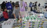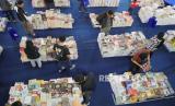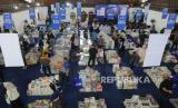Pengunjung berburu aneka buku pada acara tahunan Liga Buku Jabar Juara 2023, di GOR Saparua, Kota Bandung, Jumat (22/9/2023). Kegiatan yang bertajuk Jabar Juara Cinta Literasi ini menghadirkan lebih dari 50 penerbit. Acara berlangsung dari 22 September hingga 1 Oktober 2023. (FOTO : Edi Yusuf/Republika)