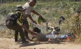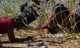 REPUBLIKA.CO.ID, EAGLE PASS -- Migran yang menyeberang ke AS dari Meksiko melewati kawat berduri di sepanjang Sungai Rio Grande, di Eagle Pass, Texas. Kamis, (21/9/2023).