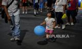 Anak didampingi orangtuanya beraktivitas di area gelaran Pestapora di JIEXpo Kemayoran, Jakarta, Jumat (22/9/2023). Festival musik bertajuk Pestapora kembali digelar untuk kedua kalinya di Gambir Expo dan JIExpo Kemayoran mulai hari ini Jumat (22/9) hingga ahad (24/9). Pada gelaran kali ini, pestapora menghadirkan sebanyak 12 panggung dan 224 penampil diantaranya musisi, band hingga stand up comedy. (FOTO : Republika/Thoudy Badai)
