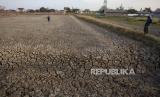 REPUBLIKA.CO.ID, INDRAMAYU -- Warga melihat areal lahan tambak ikan yang mengering di desa Pabean Udik, Indramayu, Jawa Barat, Kamis (23/9/2023).