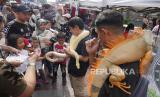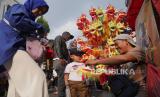 Pengunjung membeli mainan liong saat acara Cibadak Fun Day di Jalan Cibadak Lama, Kota Bandung, Sabtu (23/9/2023). (FOTO : Edi Yusuf/Republika)