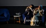 Ustadzah Dunia Shuaib (kiri) bersama Ustadzah Oki Setiana Dewi (kanan) saat mengisi seminar yang diselenggarakan oleh Indonesia Syiar Network (ISN) dengan tema Healing Emotion Practical Guide to Overcome Anxiety and Fear di CGV Grand Indonesia, Jakarta, Sabtu (23/9/2023). Dalam Seminar tersbut ustadzah Dunia Shuaib dan Ustadazh Oki menyampaikan pesan terkait prespektif islam, Al-Quran, Hadits dan Psikologi Islam dalam memandang persoalan mental healt. (FOTO : Republika/Thoudy Badai)