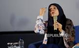 Ustadzah Dunia Shuaib saat mengisi seminar yang diselenggarakan oleh Indonesia Syiar Network (ISN) dengan tema Healing Emotion Practical Guide to Overcome Anxiety and Fear di CGV Grand Indonesia, Jakarta, Sabtu (23/9/2023). Dalam Seminar tersbut ustadzah Dunia Shuaib dan Ustadazh Oki menyampaikan pesan terkait prespektif islam, Al-Quran, Hadits dan Psikologi Islam dalam memandang persoalan mental healt. (FOTO : Republika/Thoudy Badai)