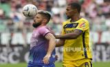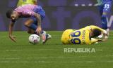 REPUBLIKA.CO.ID, MILAN -- Kesebelasan AC Milan melawan Verona berebut bola saat pertandingan sepak bola Serie A antara AC Milan dan Hellas Verona di stadion San Siro di Milan, Italia, Sabtu (23/9/2023).