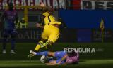 Christian Pulisic dari AC Milan menjegal pemain Verona Isak Hien (atas) saat pertandingan sepak bola Serie A antara AC Milan dan Hellas Verona di stadion San Siro di Milan, Italia, Sabtu, (23/9/2023). (FOTO : AP/Luca Bruno)