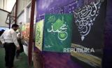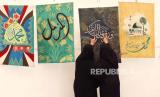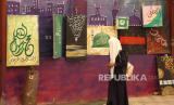 REPUBLIKA.CO.ID, SANA A -- Pengunjung melihat karya seni seniman Yaman saat pameran seni dalam rangka perayaan Maulid, di Sana a, Yaman, Sabtu (23/9/2023).