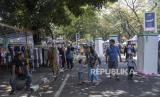Warga melihat produk UMKM yang dijual di Tamansari Street Festival di Jalan Sulanjana, Kota Bandung, Jawa Barat, Ahad (24/9/2023). Acara yang diisi dengan berbagai kegiatan seperti mewarnai aspal, bazar UMKM, karnaval dan pertunjukkan seni tersebut digelar untuk memeriahkan Hari Jadi ke-213 Kota Bandung. (FOTO : ABDAN SYAKURA/REPUBLIKA)