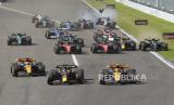 Puing-puing beterbangan saat dimulainya Grand Prix Formula Satu Jepang di Sirkuit Suzuka, Suzuka, Jepang tengah, Ahad, (24/9/2023). (FOTO : AP Photo/Toru Hanai)