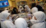 Pengunjung melihat koleksi buku pada ajang Islamic Book Fair (IBF) 2023 di Istora Senayan,Jakarta, Ahad (24/9/2023). Pada hari terakhir pameran buku Islam terlengkap dan terbesar se-Asia Tenggara ini telihat antusiasme pengunjung cukup ramai dan padat. Banyak dari mereka yang merupakan pelajar dari berbagai sekolah, pesantren hingga masyarakat umum. Pengunjung yang hadir dalam IBF 2023 tampak memenuhi berbagai booth penerbit buku. Sejumlah stand menawarkan diskon besar-besaran hingga 85%. (FOTO : Republika/Prayogi)