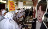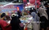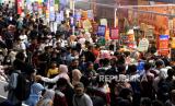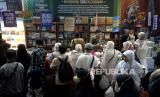 Pengunjung melihat koleksi buku pada ajang Islamic Book Fair (IBF) 2023 di Istora Senayan, Jakarta, Ahad (24/9/2023). Pada hari terakhir pameran buku Islam terlengkap dan terbesar se-Asia Tenggara ini telihat antusiasme pengunjung cukup ramai dan padat. Banyak dari mereka yang merupakan pelajar dari berbagai sekolah, pesantren hingga masyarakat umum. Pengunjung yang hadir dalam IBF 2023 tampak memenuhi berbagai booth penerbit buku. Sejumlah stand menawarkan diskon besar-besaran hingga 85%. (FOTO : Republika/Prayogi)