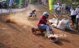 Peserta balap Gledekan beradu cepat saat Festival Gledekan Nusantara seri IV di sirkuit Kalisuren, Sidodadi, Patean, Kendal, Jawa Tengah, Ahad (24/9/2023). Balap Gledekan yang diikuti puluhan peserta tersebut bertujuan untuk melestarikan permainan tradisional yang mengandung nilai kekompakan tim dan sportivitas. (FOTO : ANTARA FOTO/Anis Efizudin)