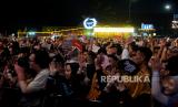 Penonton menyaksikan penampilan King Nassar saat tampil dalam gelaran Pestapora di JIExpo Kemayoran, Jakarta, Ahad (24/9/2023). Dalam penampilannya King Nassar membawakan sejumlah lagu yakni Seperti Mati Lampu, Hancur Hatiku, dan Kopi Dangdut. (FOTO : Republika/Thoudy Badai)