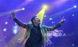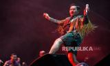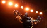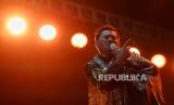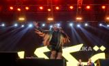 Penyanyi King Nassar saat tampil dalam gelaran Pestapora di JIExpo Kemayoran, Jakarta, Ahad (24/9/2023). Dalam penampilannya King Nassar membawakan sejumlah lagu yakni Seperti Mati Lampu, Hancur Hatiku, dan Kopi Dangdut. (FOTO : Republika/Thoudy Badai)