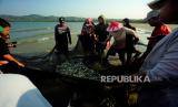 REPUBLIKA.CO.ID, SULTENG -- Sejumlah warga mengumpulkan ikan hasil menjaring di Pantai Batu Gong di Kecamatan Batu Sampara, Konawe, Sulawesi Tenggara, Ahad (24/9/2023). Warga di wilayah tersebut menjaring ikan saat air laut pasang dan hasil tangkapannya tidak jual melainkan dibagikan ke warga secara gratis.