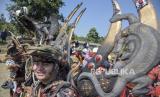 Warga mengenakan kostum bersiap untuk mengikuti Karnaval Pesona Andir di Andir, Kota Bandung, Senin (25/9/2023). Karnaval yang menampilkan beragam kebudayaan dari berbagai provinsi di Indonesia tersebut digelar dalam rangka memeriahkan Hari Jadi ke-213 Kota Bandung. (FOTO : ABDAN SYAKURA/REPUBLIKA)
