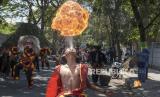 Warga melakukan atraksi saat Karnaval Pesona Andir di Andir, Kota Bandung, Senin (25/9/2023). Karnaval yang menampilkan beragam kebudayaan dari berbagai provinsi di Indonesia tersebut digelar dalam rangka memeriahkan Hari Jadi ke-213 Kota Bandung. (FOTO : ABDAN SYAKURA/REPUBLIKA)