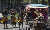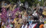 Warga mengikuti Karnaval Pesona Andir di Andir, Kota Bandung, Senin (25/9/2023). Karnaval yang menampilkan beragam kebudayaan dari berbagai provinsi di Indonesia tersebut digelar dalam rangka memeriahkan Hari Jadi ke-213 Kota Bandung. (FOTO : ABDAN SYAKURA/REPUBLIKA)