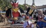 REPUBLIKA.CO.ID, BANDUNG  --  Warga mengenakan kostum bersiap untuk mengikuti Karnaval Pesona Andir di Andir, Kota Bandung, Senin (25/9/2023).