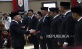 Gubernur Kalimantan Tengah (Kalteng) Sugianto Sabran atas nama Presiden RI lantik berikan selamat dan pandu pengucapan sumpah/janji jabatan Penjabat (Pj) Bupati 9 Kabupaten dan 1 Kota di Provinsi Kalteng, bertempat di Aula Jayang Tingang, Kantor Gubernur Kalteng, Senin (25/9/2023). (FOTO : Dok.Republika)