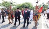 Gubernur Kalimantan Tengah (Kalteng) Sugianto Sabran (ketiga kiri) berjalan saat akan melantik pengucapan sumpah/janji jabatan Penjabat (Pj) Bupati 9 Kabupaten dan 1 Kota di Provinsi Kalteng, bertempat di Aula Jayang Tingang, Kantor Gubernur Kalteng, Senin (25/9/2023). (FOTO : Dok.Republika)
