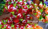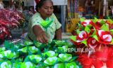 REPUBLIKA.CO.ID, BANYUWANGI -- Perajin menata bunga telur di pasar Banyuwangi, Jawa Timur, Senin (25/9/2023).