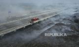 Sebanyak 17 unit mobil memadamkan api secara bergantian selama tiga hari karena asap sisa kebakaran masih menutupi jarak pandang kendaraan yang melintas di tol dan terdapat jalur pipa gas di lokasi kebakaran.
